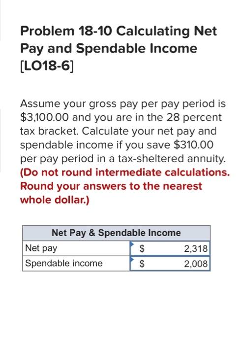 Solved Problem 18 10 Calculating Net Pay And Spendable Chegg Com